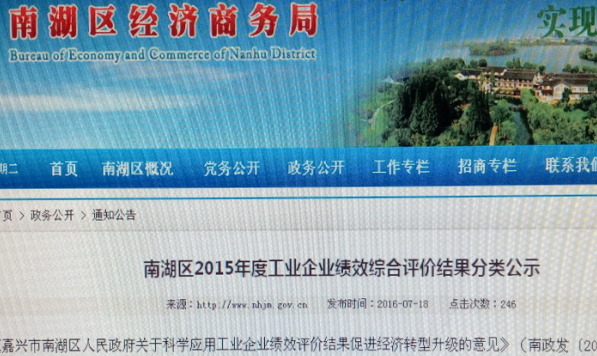 公司獲評(píng)南湖區(qū)2015年度工業(yè)企業(yè)績(jī)效綜合評(píng)價(jià)A類企業(yè)
