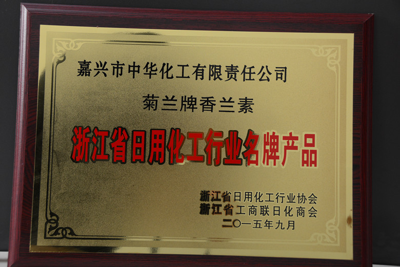 2015年12月4日,浙江省日化行業(yè)協(xié)會(huì)五屆六次理事會(huì)在浙江鐵道大廈順利召開(kāi)。會(huì)上對(duì)浙江省日化行業(yè)名牌產(chǎn)品進(jìn)行了頒獎(jiǎng),我公司生產(chǎn)的“菊蘭”牌香蘭素、乙基香蘭素榮獲浙江省日化行業(yè)名牌產(chǎn)品。公司注冊(cè)商標(biāo)“久珠”現(xiàn)為中國(guó)馳名商標(biāo)、浙江省著名商標(biāo)和浙江省出口名牌,“久珠”牌香蘭素、乙基香蘭素為浙江省名牌產(chǎn)品。相信“久珠”和“菊蘭”的珠聯(lián)璧合,一定能將中華化工的香蘭素事業(yè)做得更大更強(qiáng)。