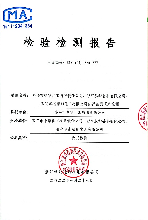 報(bào)告名稱:中華化工、縱華、豐杰2022年1季度廢水檢測報(bào)告