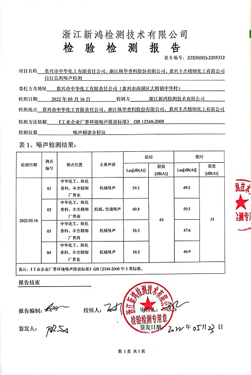 報告名稱:中華化工、豐杰、縱華2022.2季度噪聲檢測報告