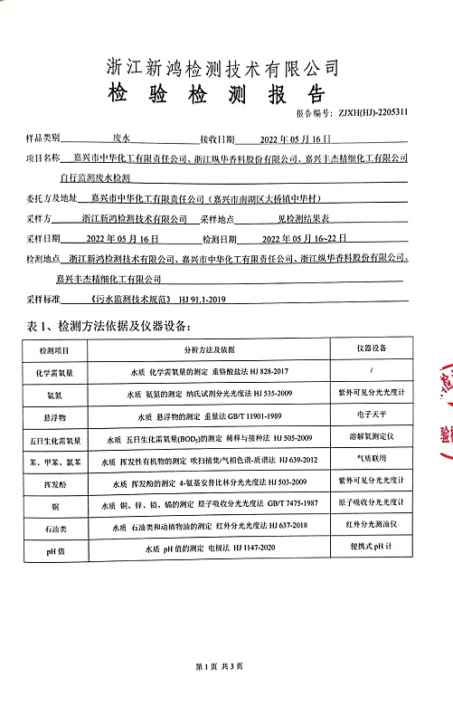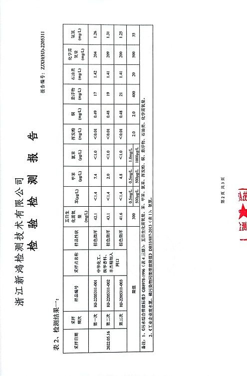 報(bào)告名稱:中華化工、豐杰、縱華2022.2季度廢水檢測報(bào)告