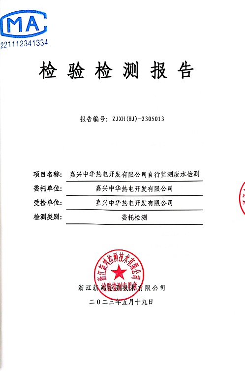 報(bào)告名稱:中華熱電2023.5月廢水檢測(cè)報(bào)告