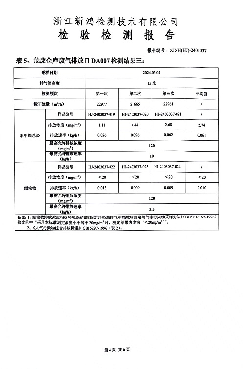 報告名稱:2024年中華化工1季度廢氣檢測報告