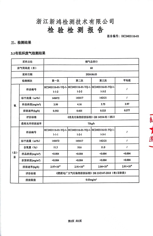 報告名稱:2024年中華熱電6月廢氣檢測報告