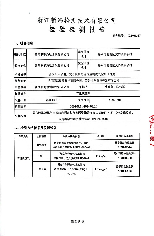 - 中華熱電7月廢氣檢測(cè)報(bào)告