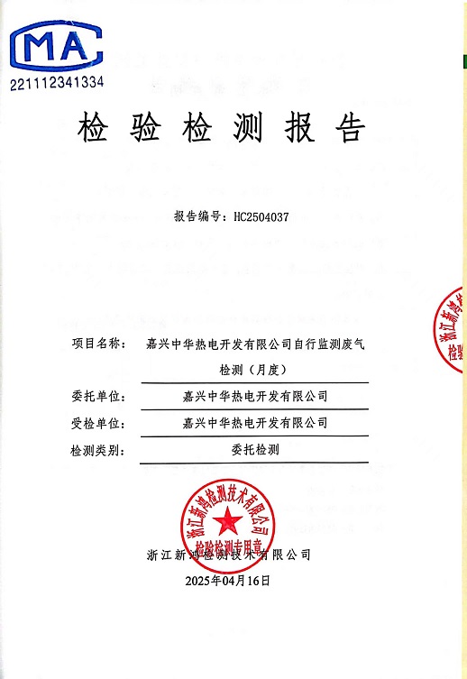 報(bào)告名稱:中華熱電4月廢氣檢測報(bào)告