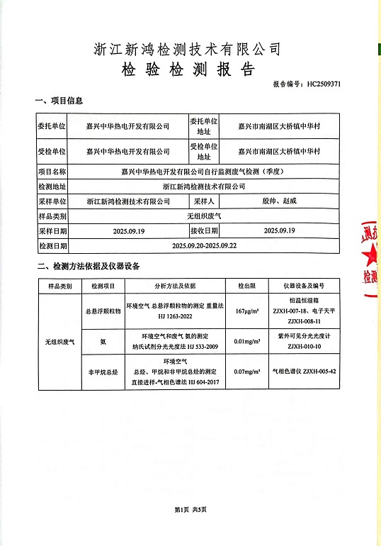 報告名稱:中華熱電3季度廠界檢測報告