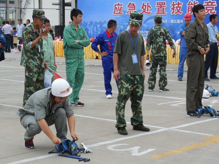 2015年6月25日至26日,全省首屆危險化學(xué)品企業(yè)員工應(yīng)急處置技能競賽活動在嘉興港區(qū)舉行,參加競賽的由全省11個市組成的22支代表隊隊伍、142名隊員。我公司曹曉良、駱小飛、趙明駿三位同志參加了嘉興市南湖區(qū)代表隊,其中曹曉良在緊急關(guān)閉閥門項目中獲得全省第一名的好名次。為本市與公司爭得了榮譽。
