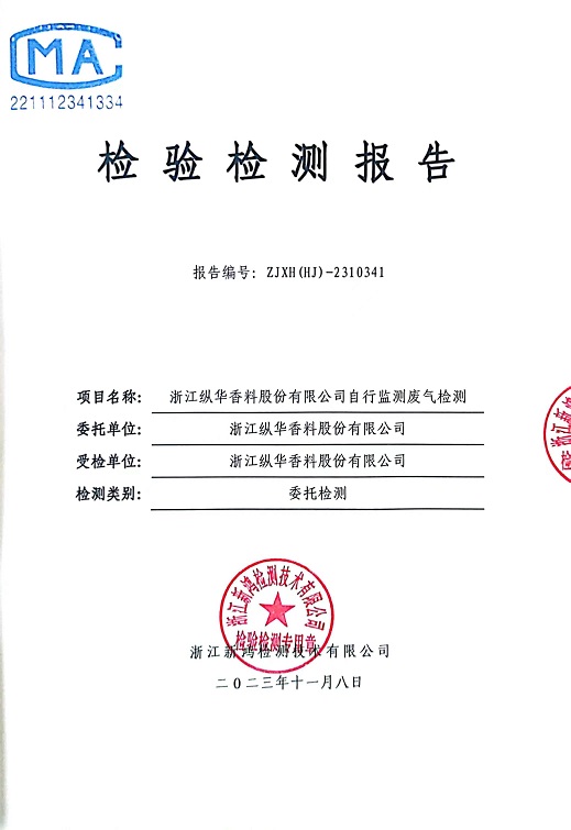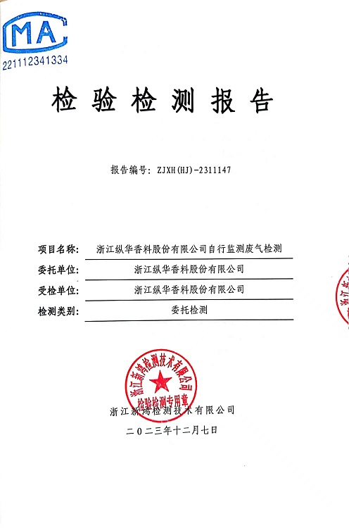 - 縱華香料5月廢氣檢測(cè)報(bào)告