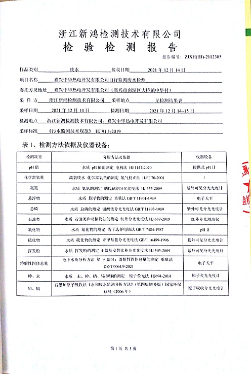 - 中華熱電9月廢水檢測(cè)報(bào)告