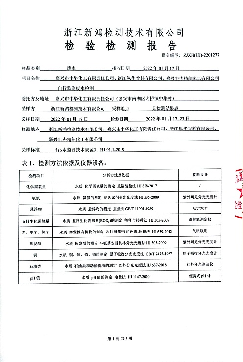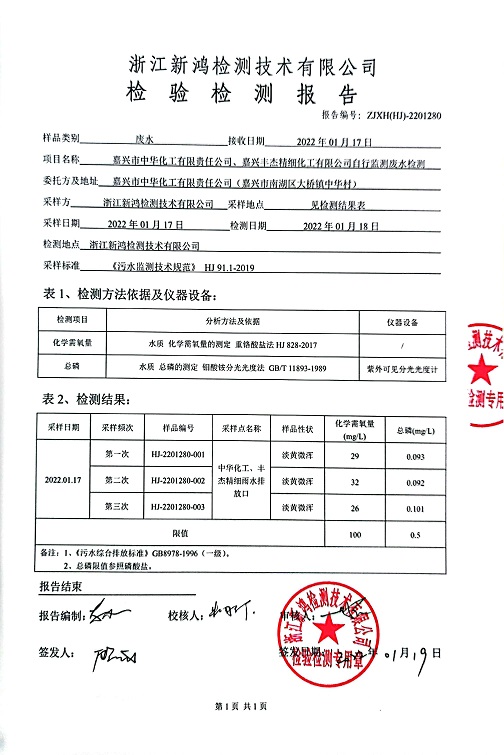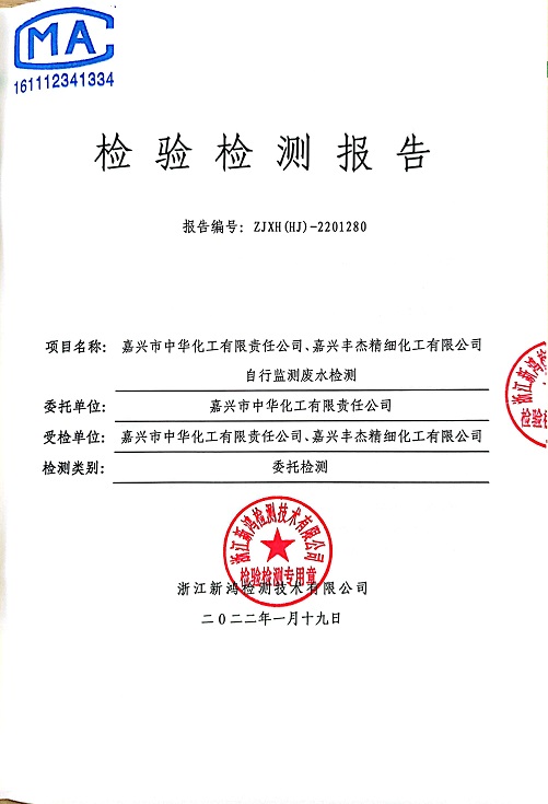 報(bào)告名稱:中華化工、縱華、豐杰2022年1季度廢水檢測報(bào)告