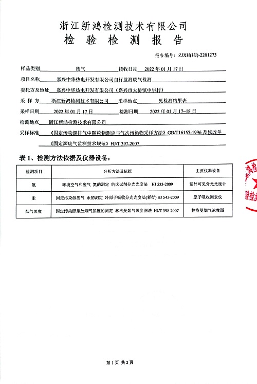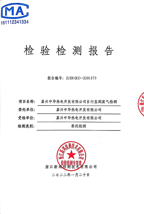 報(bào)告名稱:中華熱電2022.1月廢氣檢測(cè)報(bào)告