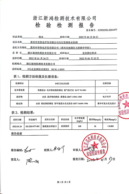 - 中華熱電6月廢水檢測(cè)報(bào)告