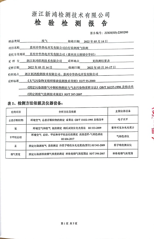 - 中華熱電6月廢氣檢測(cè)報(bào)告