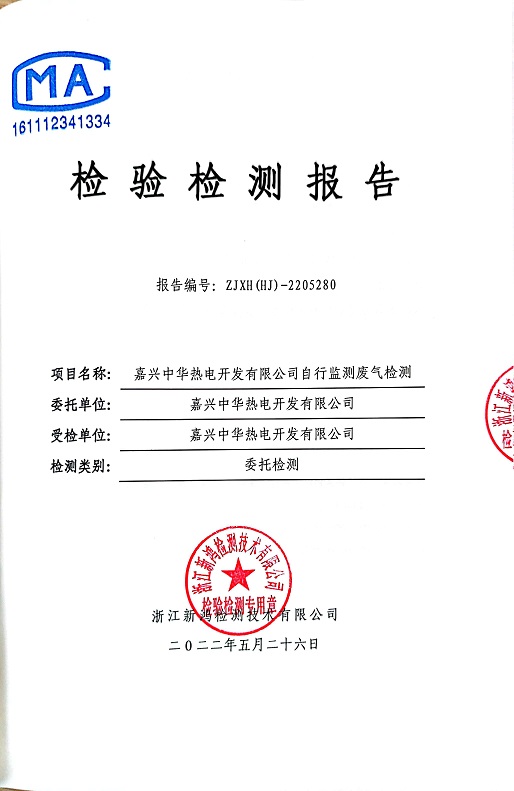 報(bào)告名稱:中華熱電2022.5月廢氣檢測(cè)報(bào)告