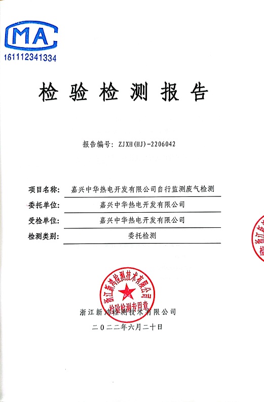 報(bào)告名稱:中華熱電2022年6月廢氣檢測報(bào)告