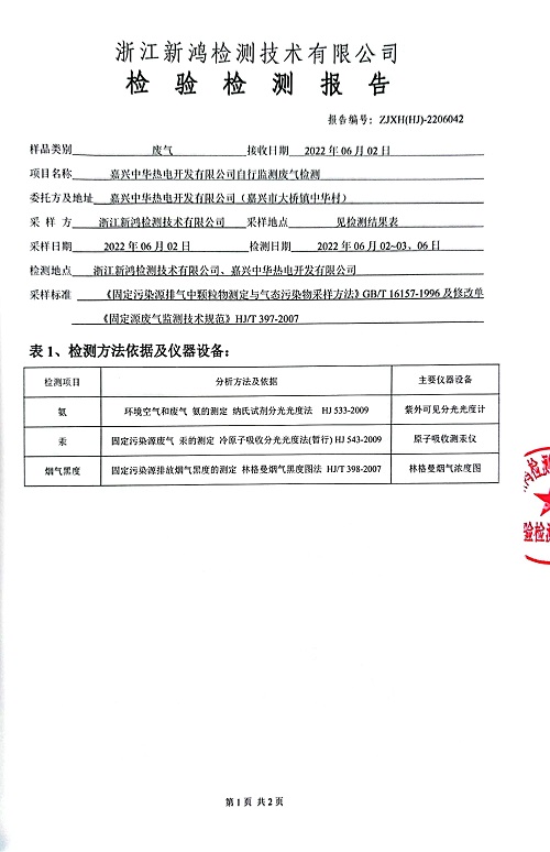 - 中華熱電6月廢氣檢測報(bào)告