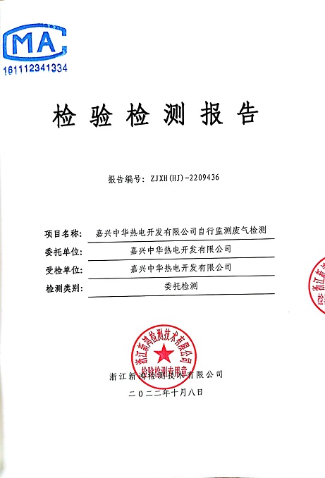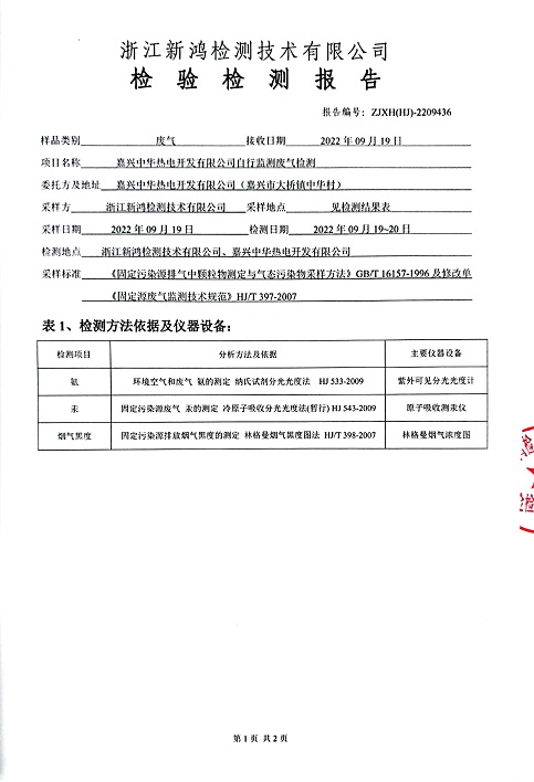 報告名稱:中華熱電2022年9月廢氣檢測報告
