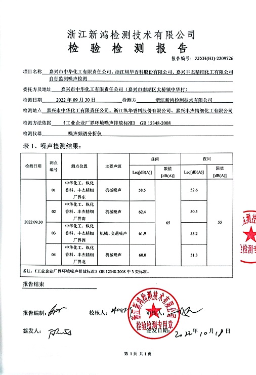 報(bào)告名稱:中華化工、縱華、豐杰2022年3季度噪聲檢測報(bào)告
