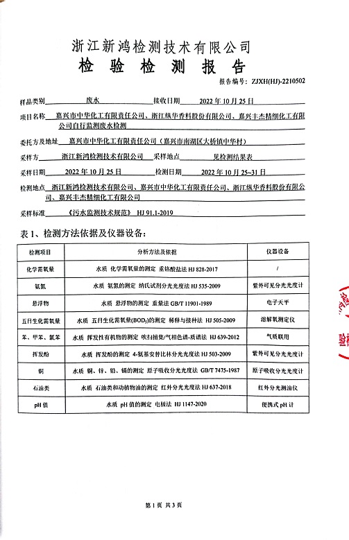 報告名稱:中華化工、縱華、豐杰2022年4季度廢水檢測報告