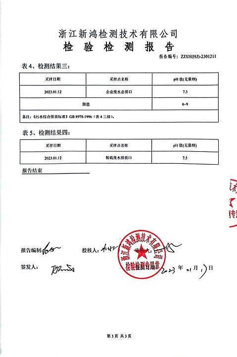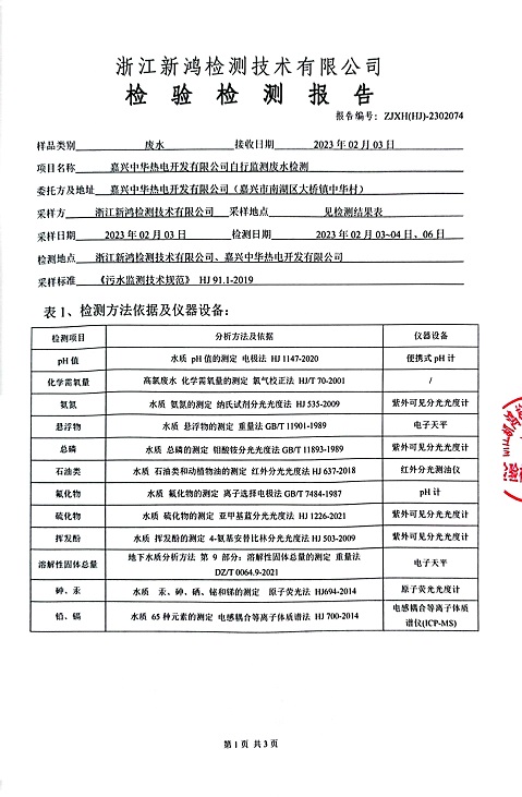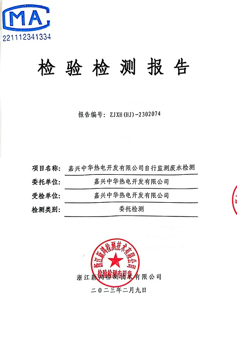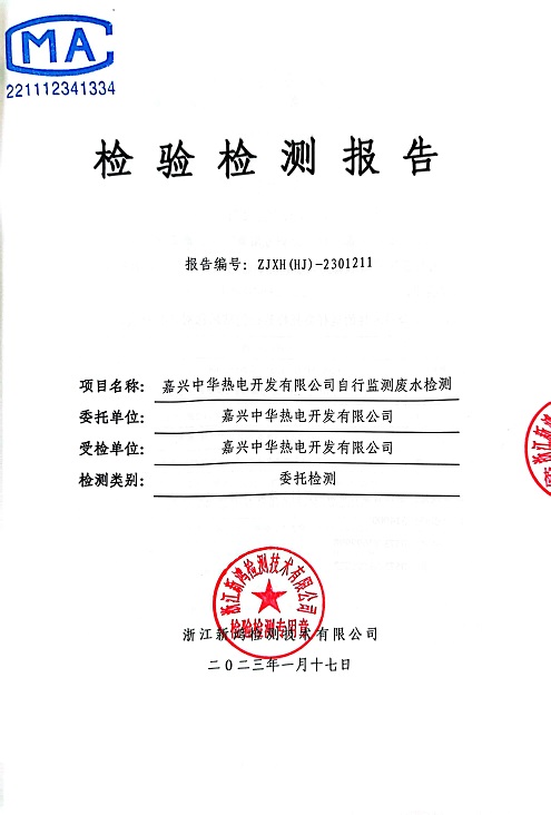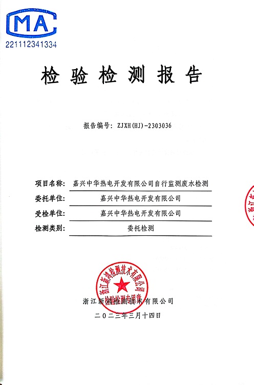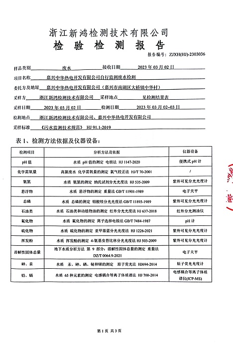 報(bào)告名稱:中華熱電2023.1-3月廢水檢測(cè)報(bào)告