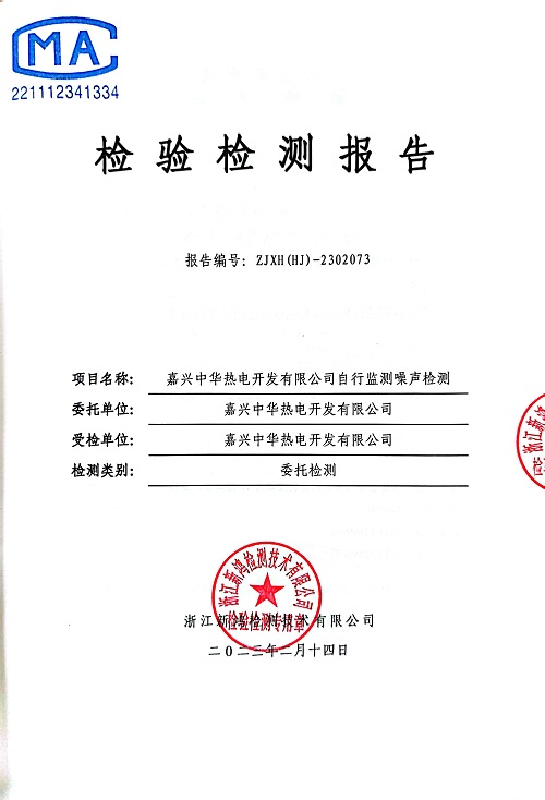 報告名稱:中華熱電2023年1季度噪聲檢測報告