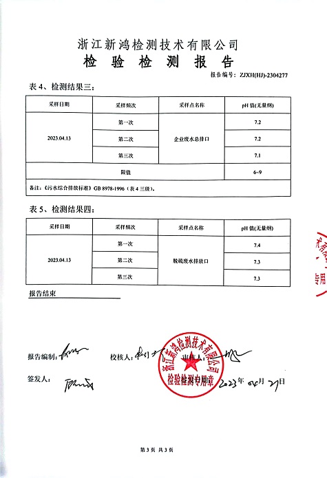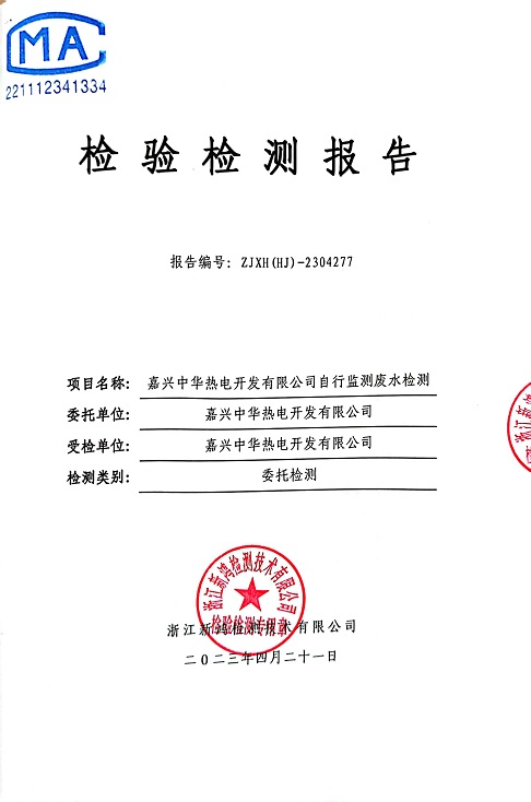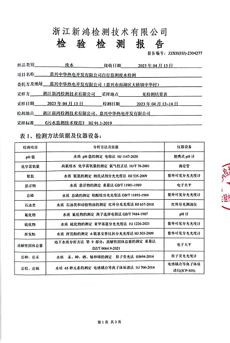 報(bào)告名稱:中華熱電2023.4廢水檢測(cè)報(bào)告