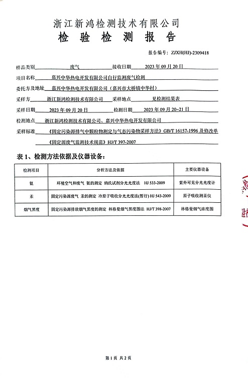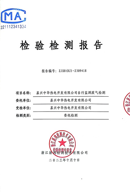 報(bào)告名稱:中華熱電2023.9月廢氣檢測報(bào)告