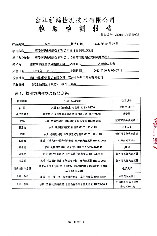 報告名稱:中華熱電2023.10月廢水檢測報告
