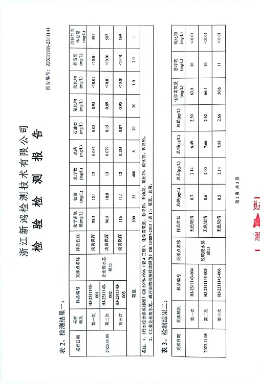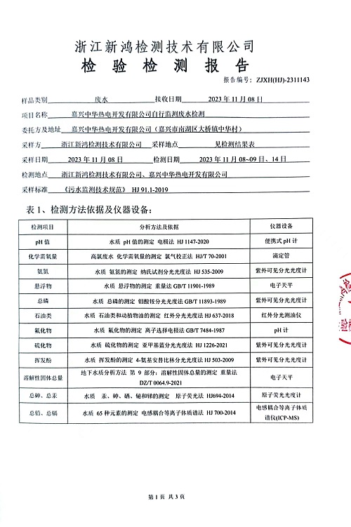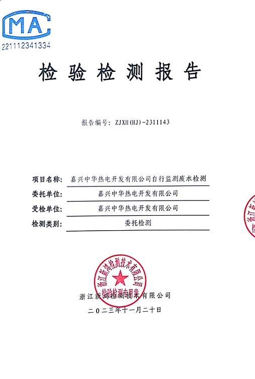 報(bào)告名稱:中華熱電2023.11廢水檢測報(bào)告