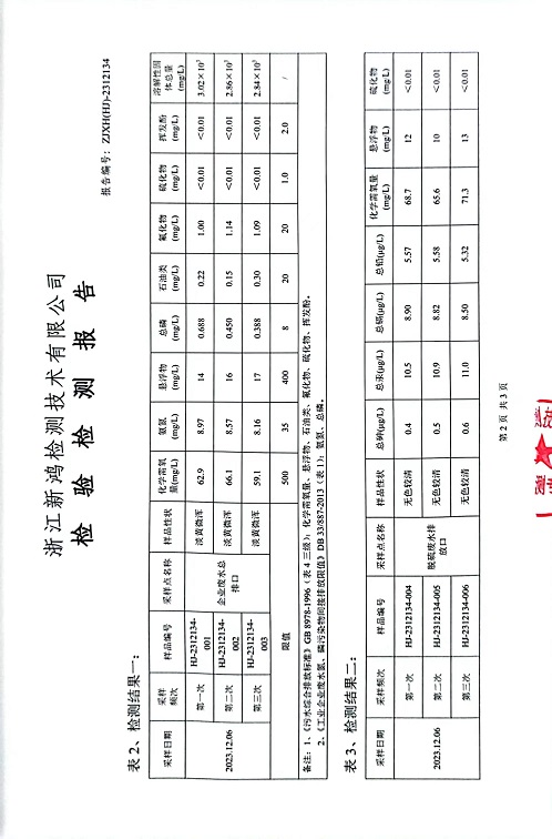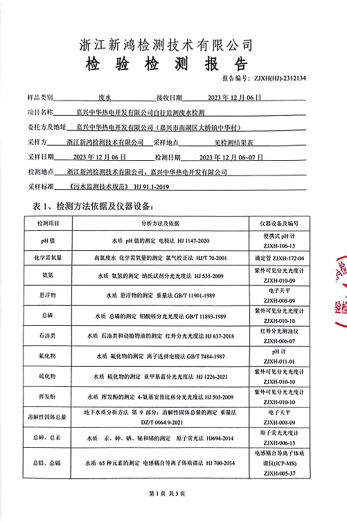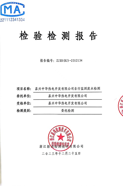 報(bào)告名稱:中華熱電2023年12月廢水檢測(cè)報(bào)告