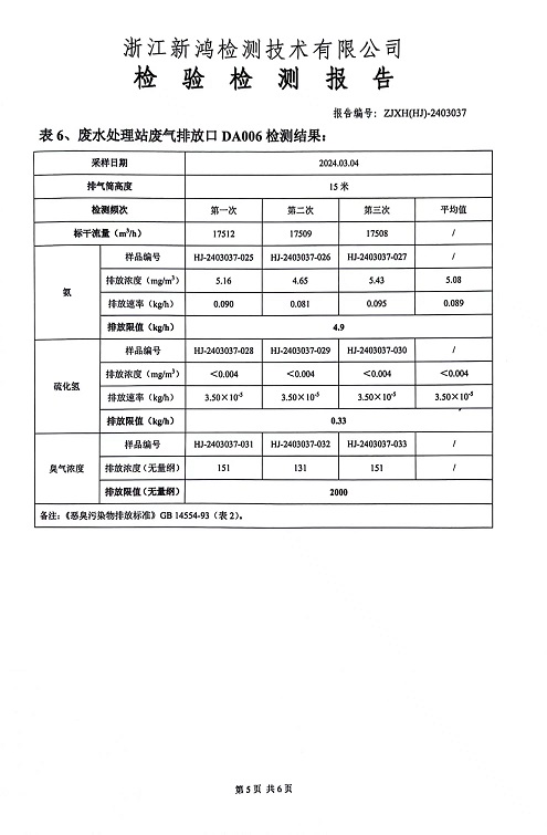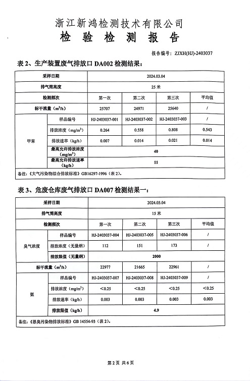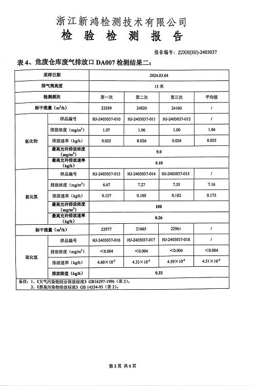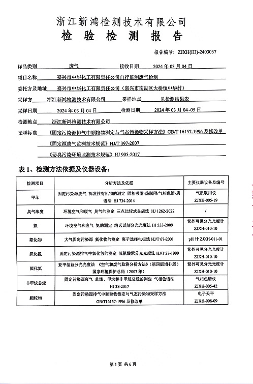 報告名稱:2024年中華化工1季度廢氣檢測報告