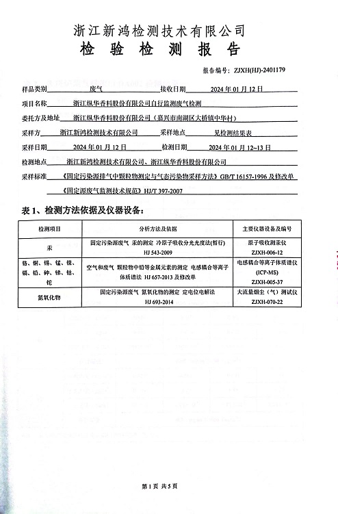 報(bào)告名稱:2024年縱華1月廢氣檢測報(bào)告