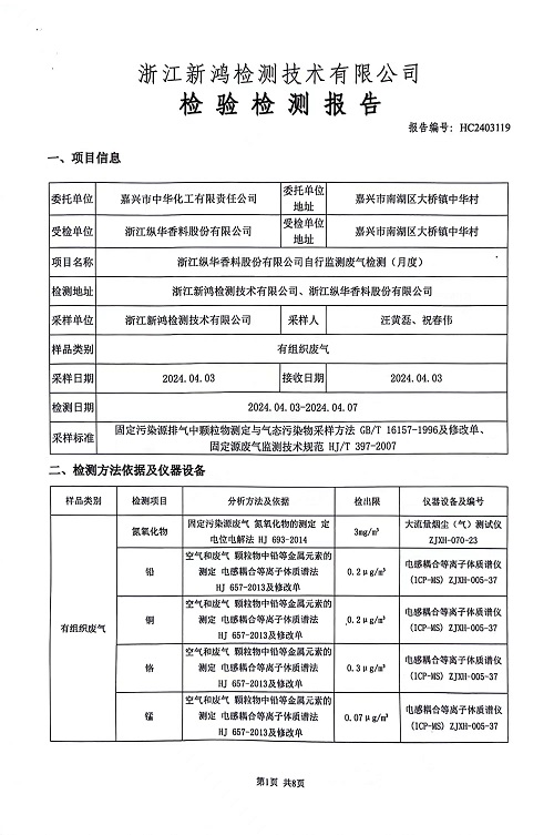 報告名稱:2024年縱華4月廢氣檢測報告