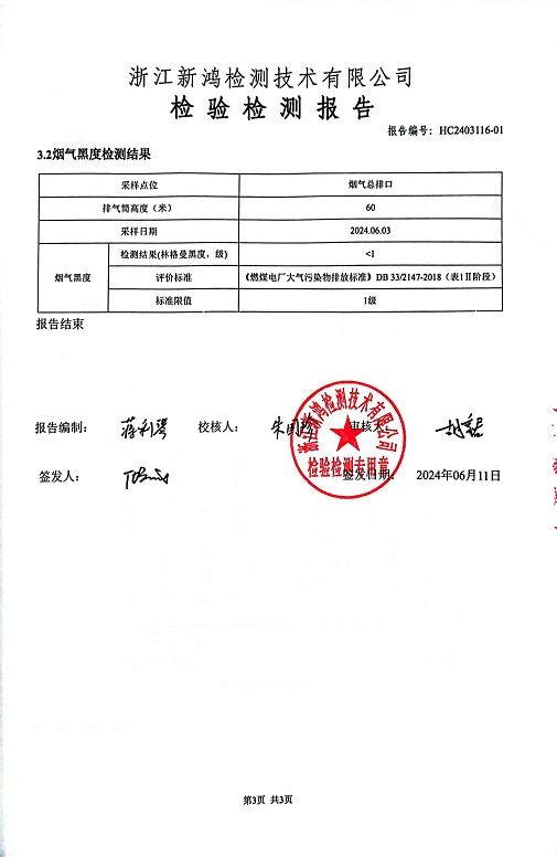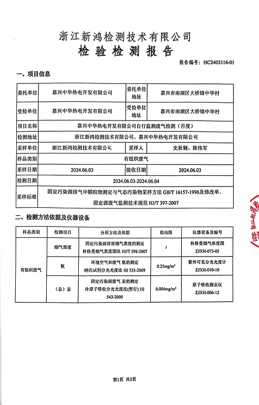 報告名稱:2024年中華熱電6月廢氣檢測報告