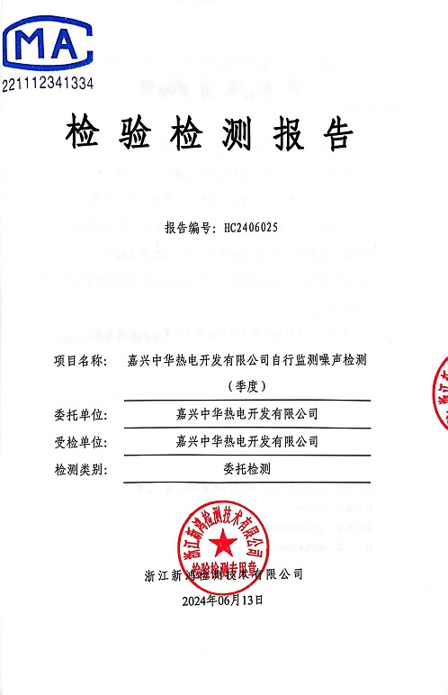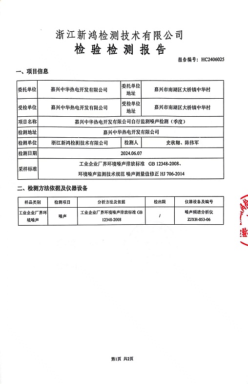 報(bào)告名稱:2024年中華熱電2季度噪聲