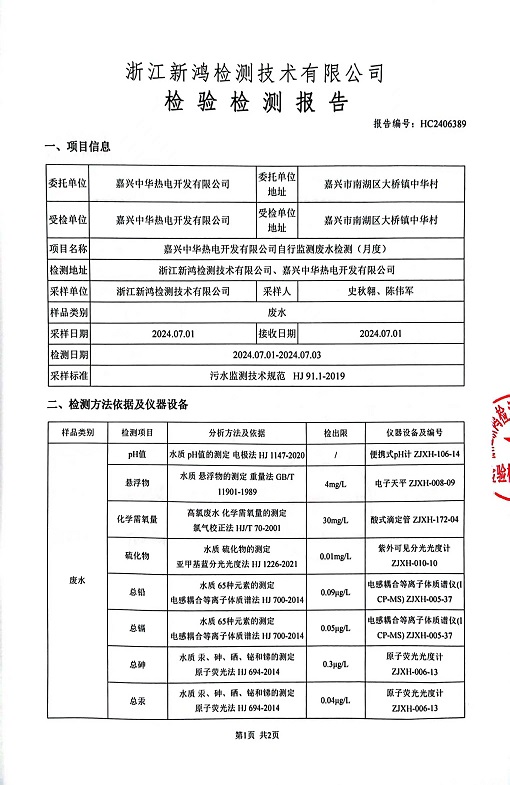 - 中華熱電7月廢水檢測(cè)報(bào)告