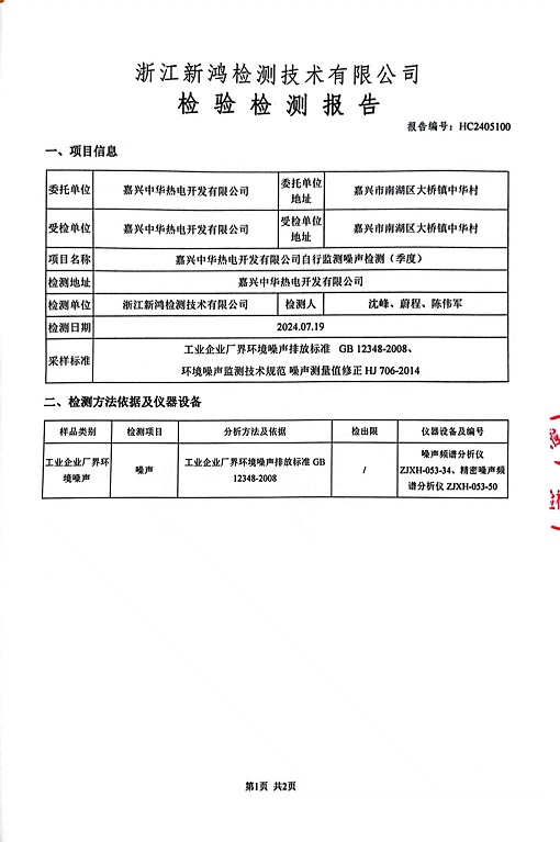- 中華熱電2季度噪聲檢測(cè)報(bào)告