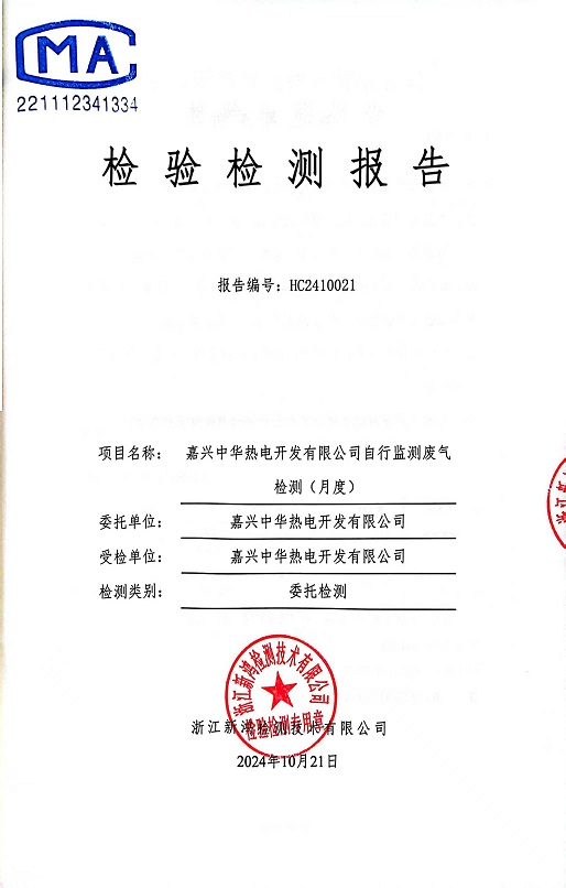報告名稱:中華熱電10月廢氣檢測報告