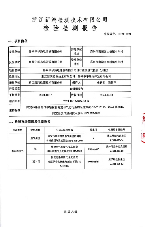 - 中華熱電廠界4季度檢測報告