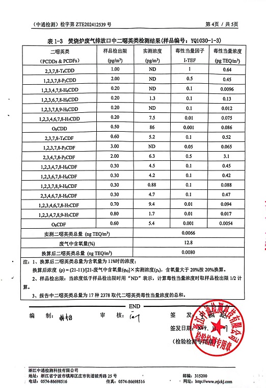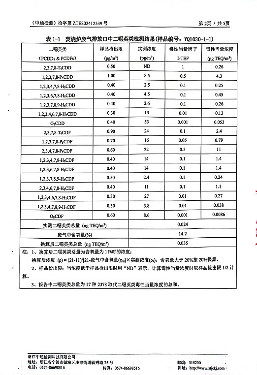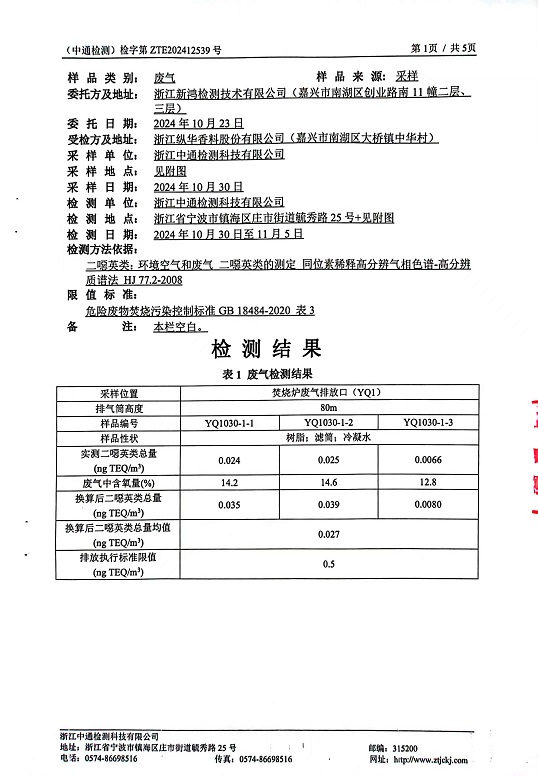 報(bào)告名稱:2024年縱華二噁英下半年檢測報(bào)告