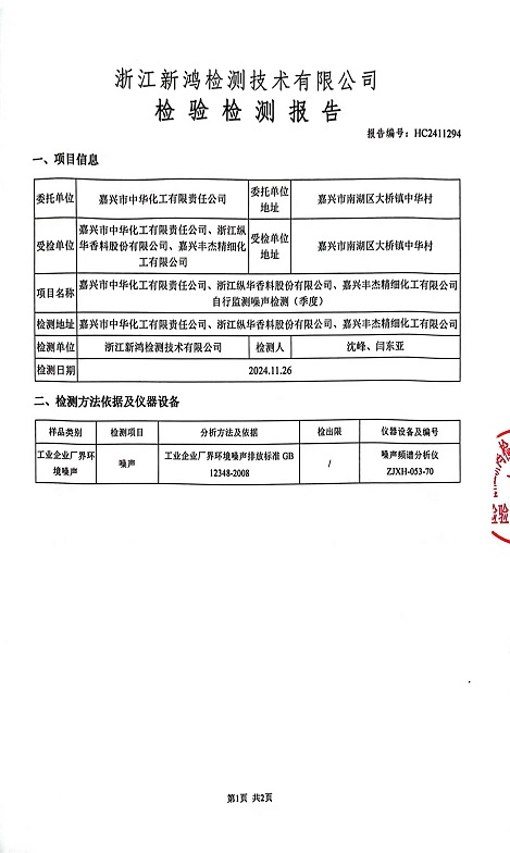 - 中華化工3季度噪聲檢測(cè)報(bào)告
