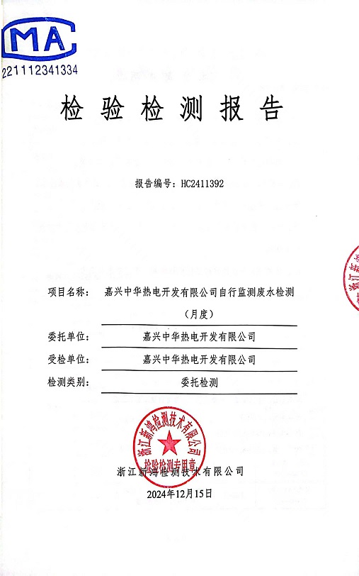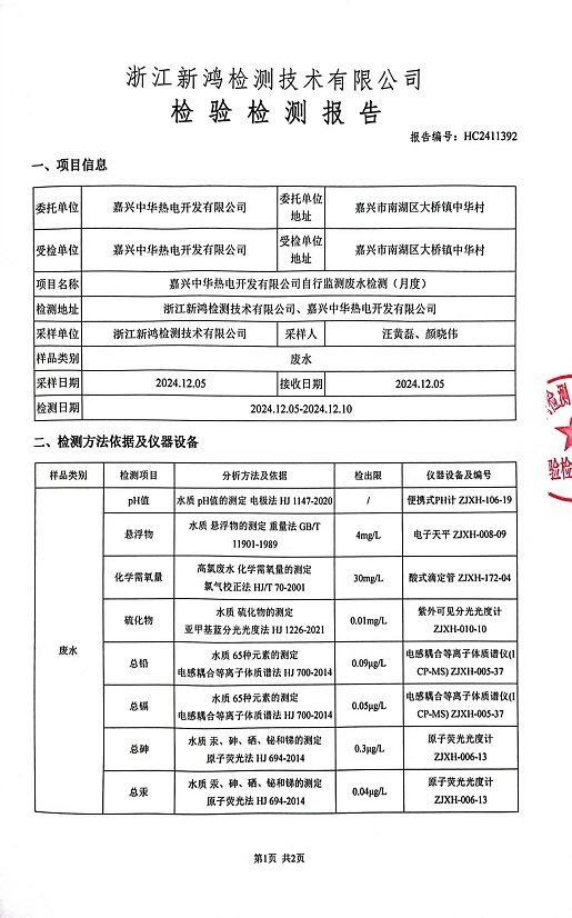 報(bào)告名稱:中華熱電12月廢水檢測報(bào)告