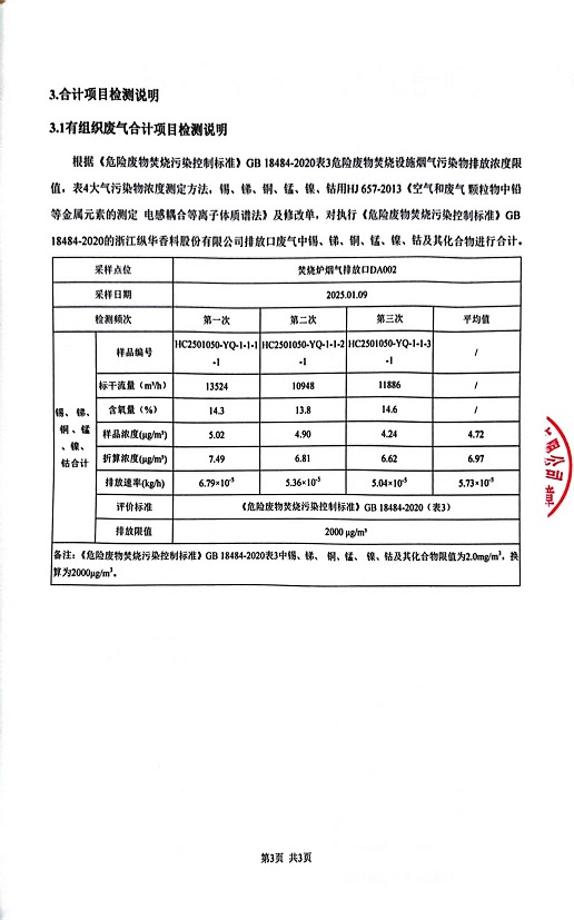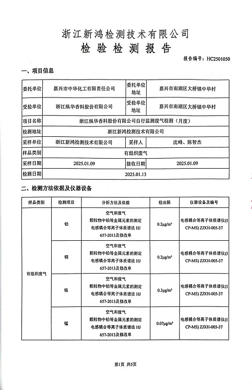 報(bào)告名稱:2025年1月縱華香料煙氣檢測報(bào)告