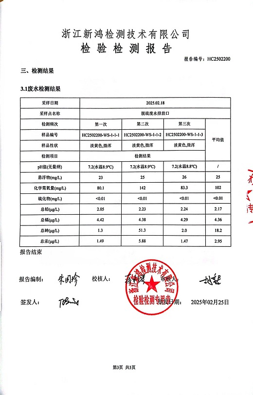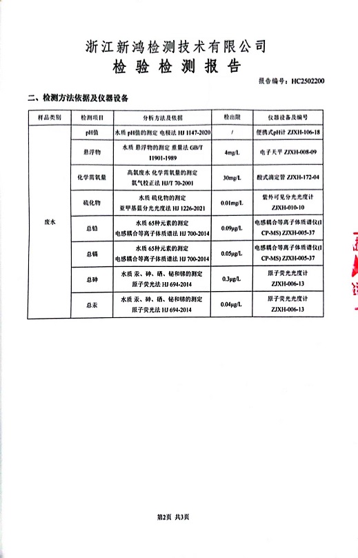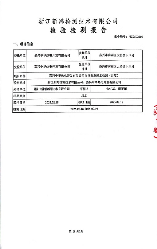 報(bào)告名稱:中華熱電2025年2月廢水檢測(cè)報(bào)告