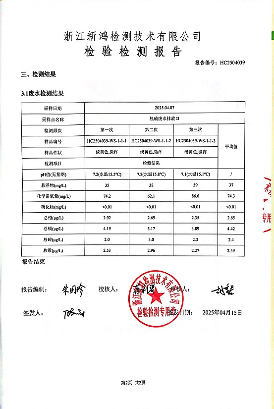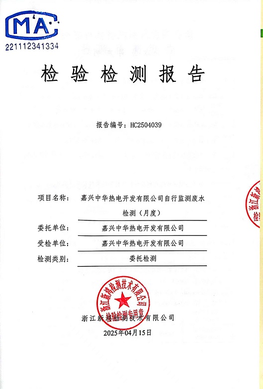 報(bào)告名稱:中華熱電4月廢水檢測(cè)報(bào)告