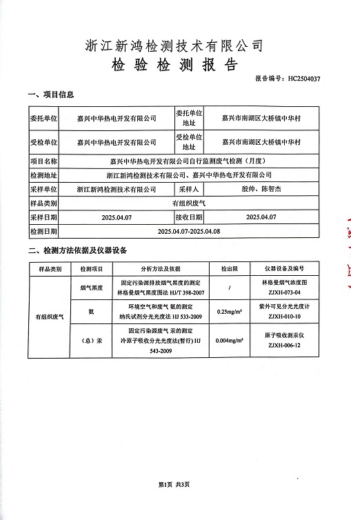 報(bào)告名稱:中華熱電4月廢氣檢測報(bào)告