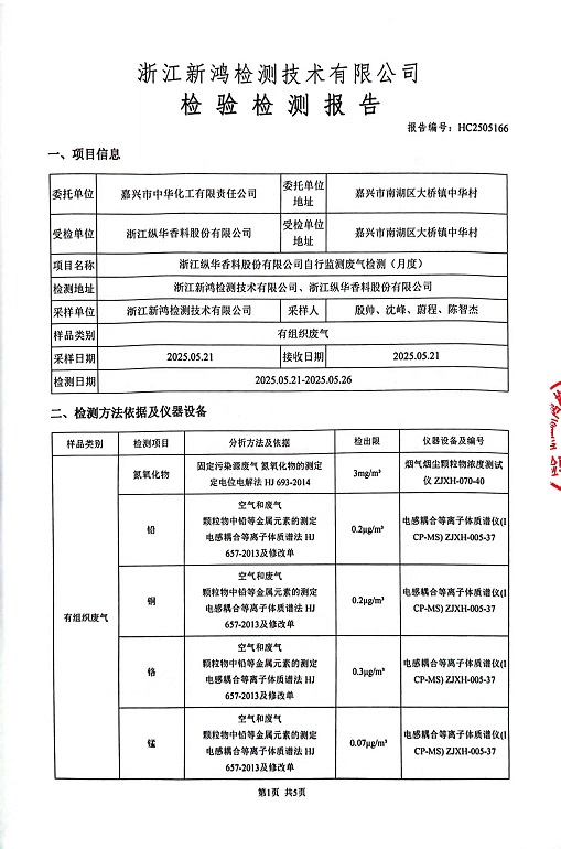 報告名稱:縱華香料5月廢氣檢測報告