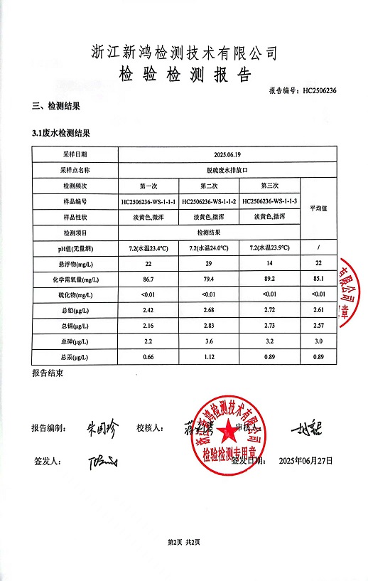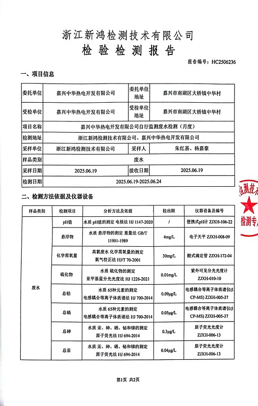 報告名稱:中華熱電6月廢水檢測報告