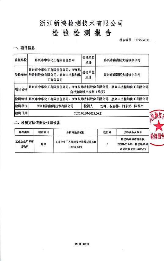 報(bào)告名稱(chēng):中華化工2季度噪聲檢測(cè)報(bào)告
